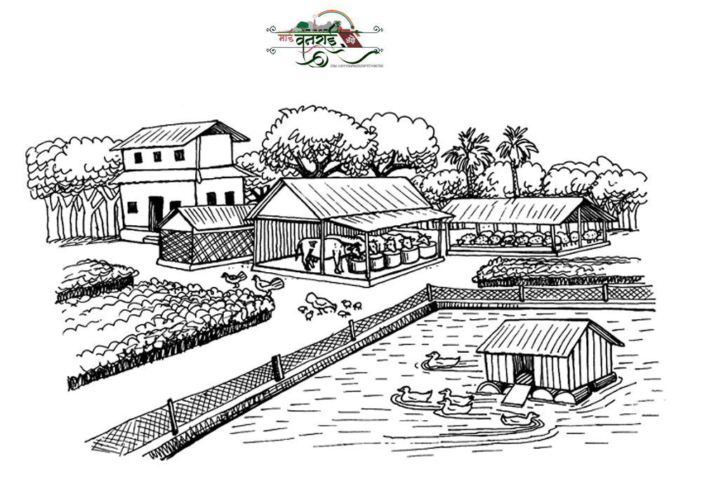 One residential farmer family will be kept behind every 5 plots for farming. There will be a cow shed near their house, a separate arrangement for goat rearing and a separate cage for hens.